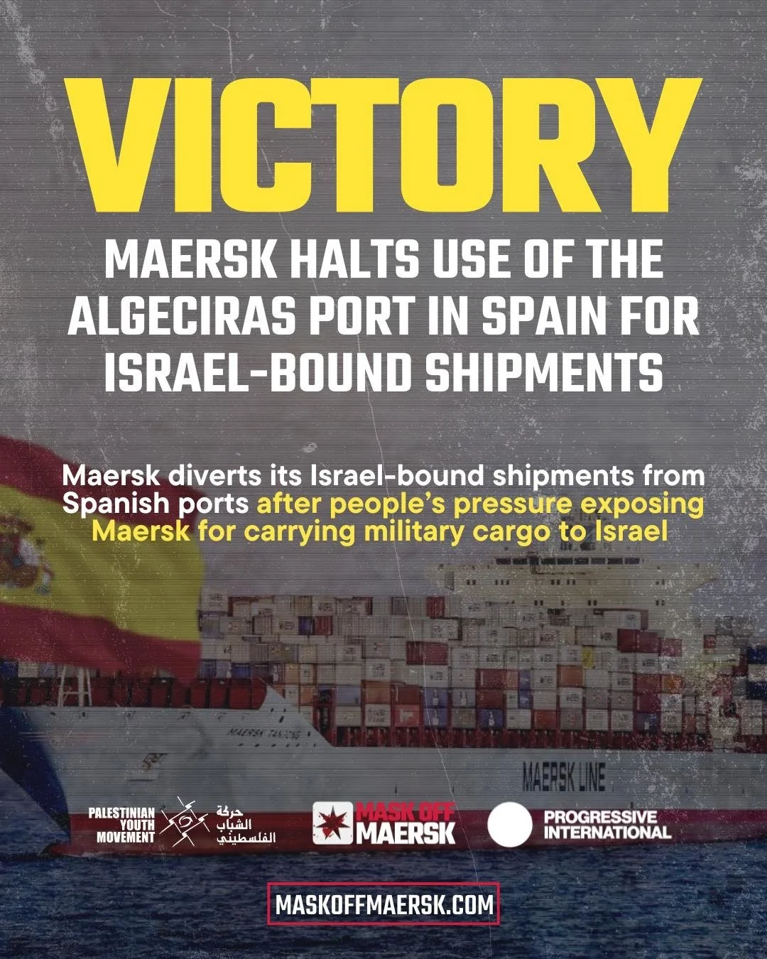 Since launching, Maersk has been listed as an official BDS target, and we have been able to generate major wins that challenge Maersk’s role in Israel’s genocide. From Spain blocking Maersk ships, to Maersk announcing that it would halt the transport of goods to and from Israeli settlements, our campaign has generated critical victories, and we’re only just beginning.